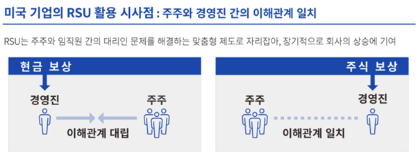 (4) 스톡옵션은 보상으로 회사의 주식매수 기회를 주는 것인데 주식대금을 지급해야 하지만, RSU는 무상으로 주식을 지급하는 것입니다. 유불리가 있지만 미국에서 스톡옵션보다 훨씬 일반적 보상제도로 활용된다고 합니다.